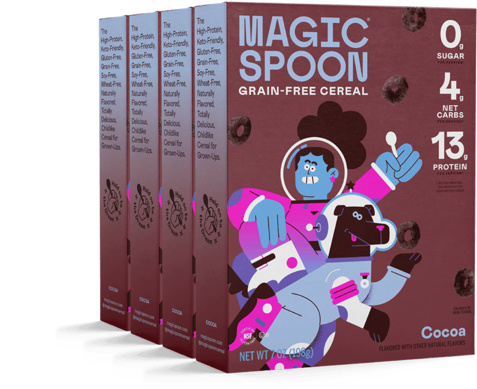 Nothing says “treat yourself” like enjoying a cocoa-flavored cereal for breakfast as an adult, and I can seriously vouch for this reduced-guilt option. I was honestly skeptical after hearing the hosts of my favorite podcast (Who? Weekly) gush about Magic Spoon but can report that I am now a believer after trying it for myself.
