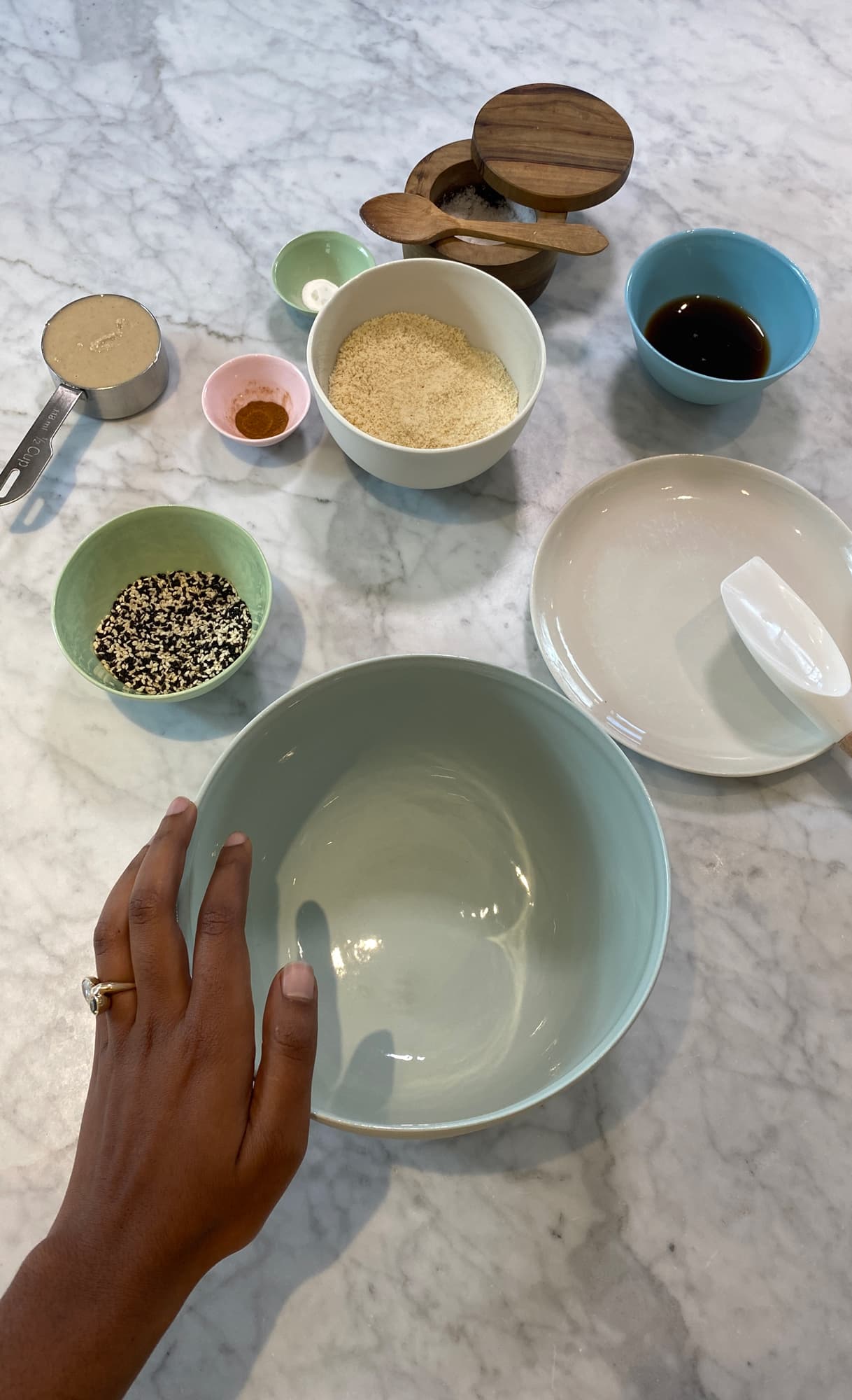 2. In a separate small bowl, mix the almond flour, baking soda, cinnamon, and salt.