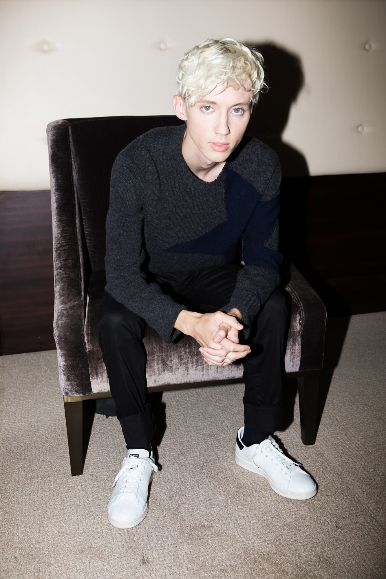 . Sure, his porcelain skin, fawn-like blue eyes, and immortal cheekbones are magnetizing, but it’s the way the 23-year-old Australian singer-songwriter and actor speaks beyond his years that draws you in. It’s been a big year for Sivan; when we sat down a few weeks ago during