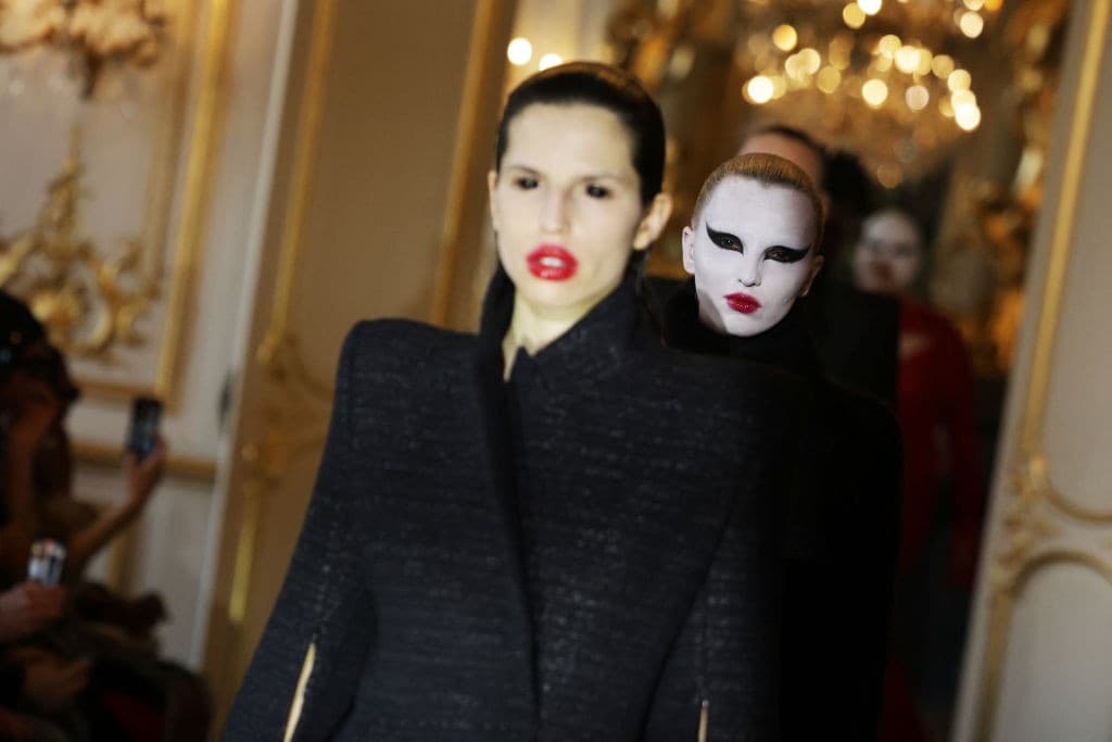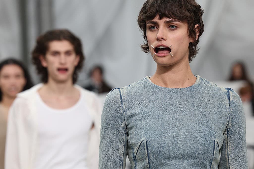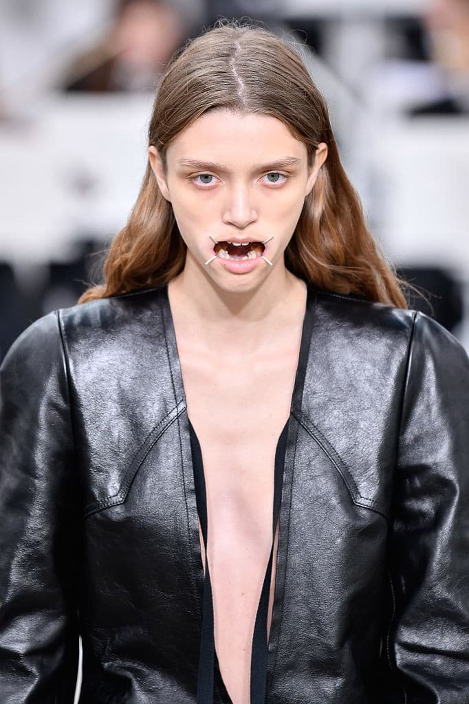 Dilara Findikoglu S/S 26 WWD/GettyDilara Findikoglu’s S/S 2026 presentation remained consistent with her gothic world, teasing themes of capture, freedom, and innocence (or the lack thereof). Models at Matieres Fecales had enlarged obsidian eyes, blood-hued eyeliner, and ghostlike complexions that were both hair-raising and magnetic. Collina Strada centered the Jungian concept of the shadow self through both contrasting garments and abstract beauty direction. Luar, while more fantastical than daunting, channeled elements of the surreal through feather accoutrements that drew lines of connection between humans and animalistic features. Margiela models went viral for painful-looking contraptions that stretched models' mouths wide, like some sort of dental torture instrument. The overall beauty vibe for the season was an eerie sense of discomfort.