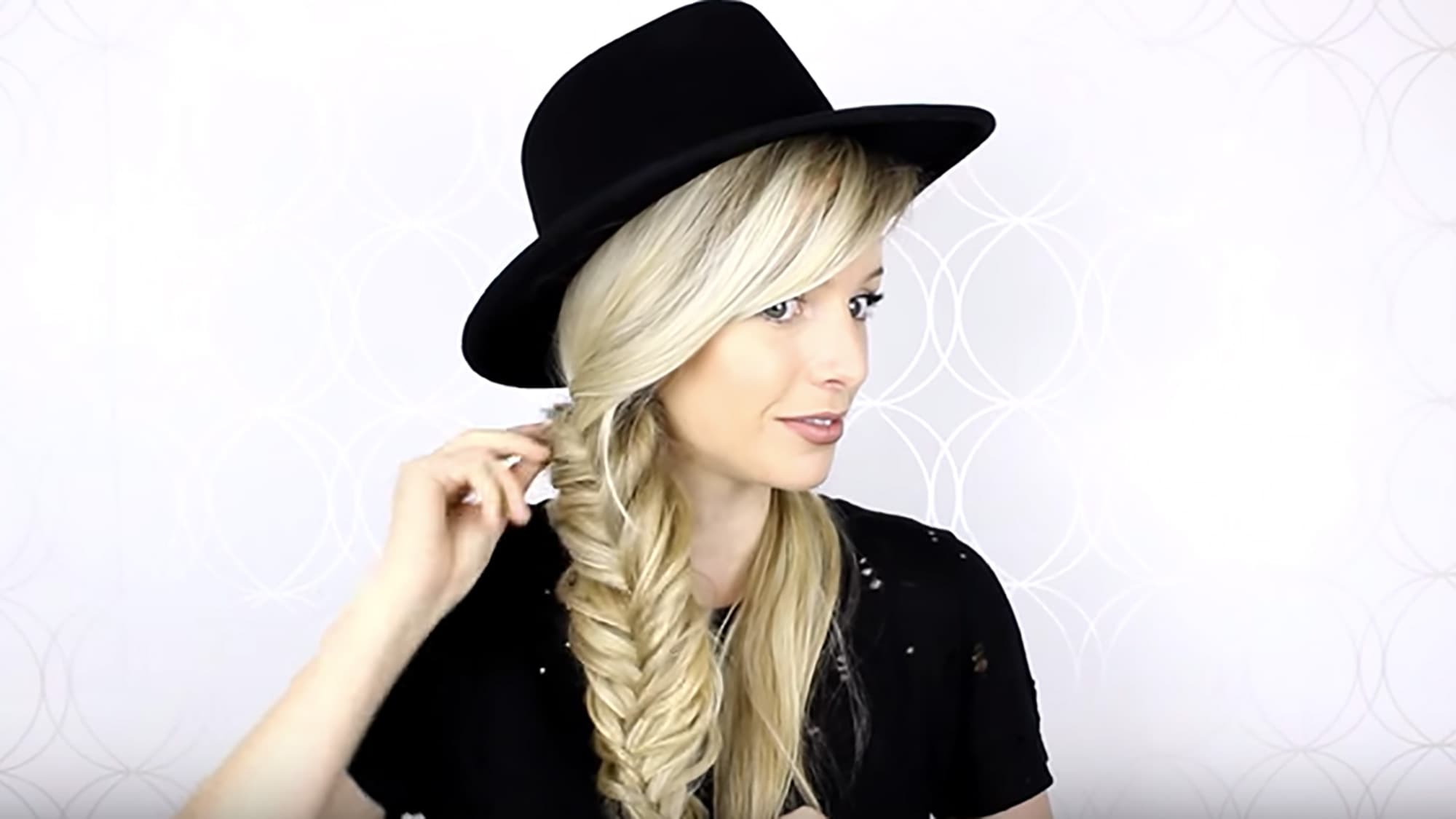If you think that wearing your hair straight under a hat is too boring, or doesn’t have enough movement, there are options that won’t completely hide your locks away, don’t worry. Islava tells me that “a good blowout for body and movement...would give it a more polished but still sensual look when you add the hat.” Don’t have time to stop by a salon to get said blowout? The tutorial above has you covered.