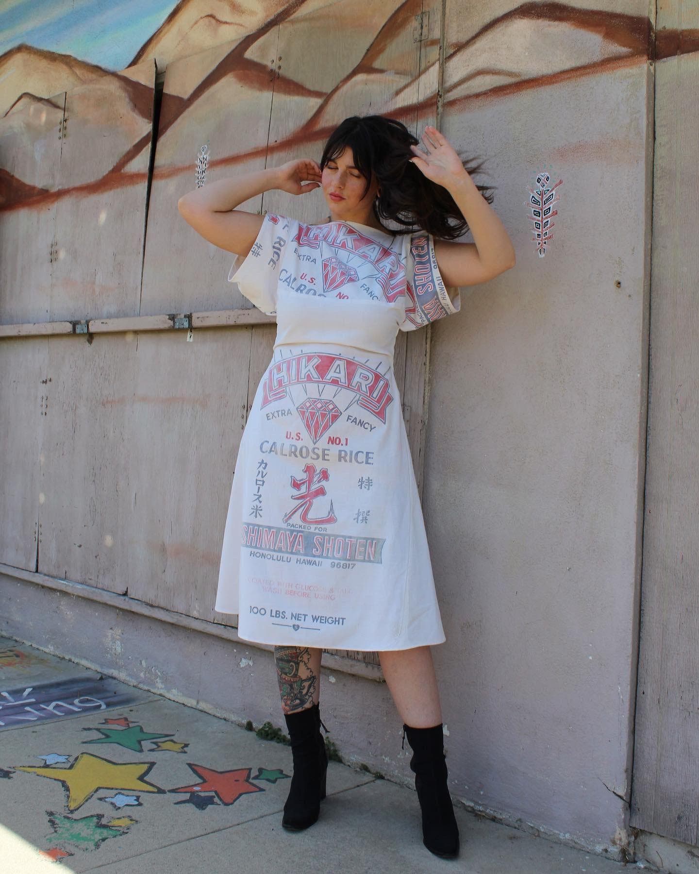 Photo: Courtesy of 3 WomenFounded by Crystal Lee Early and Natalie Mumford, California-based 3 Women made a name for itself by upcycling cherished vintage textiles, specifically old rice, flour, and feed sacks. The practices are personal. "In a sentimental nod to Crystal's family, our first jacket was made using a 1950s rice sack saved from her family's Chinese frozen food business, Dragon Foods, in Windsor, Ontario, Canada," explains Mumford. "Using family heirlooms to create custom clothing is a special way to preserve and carry on one's family history."