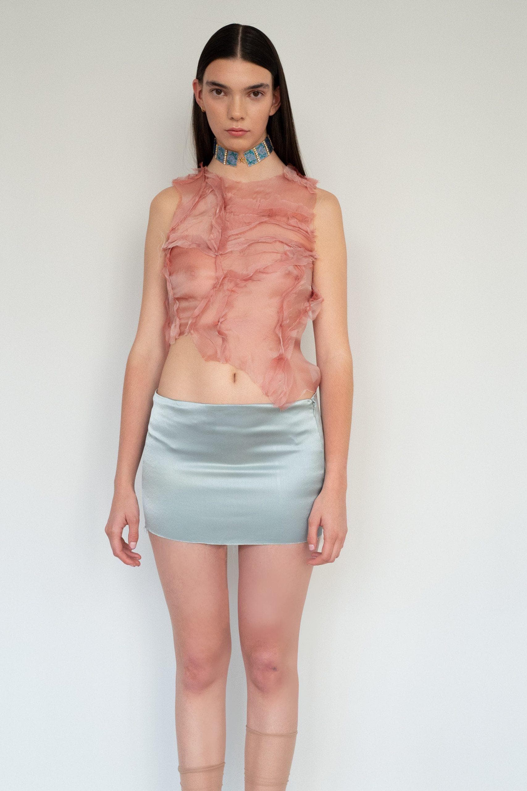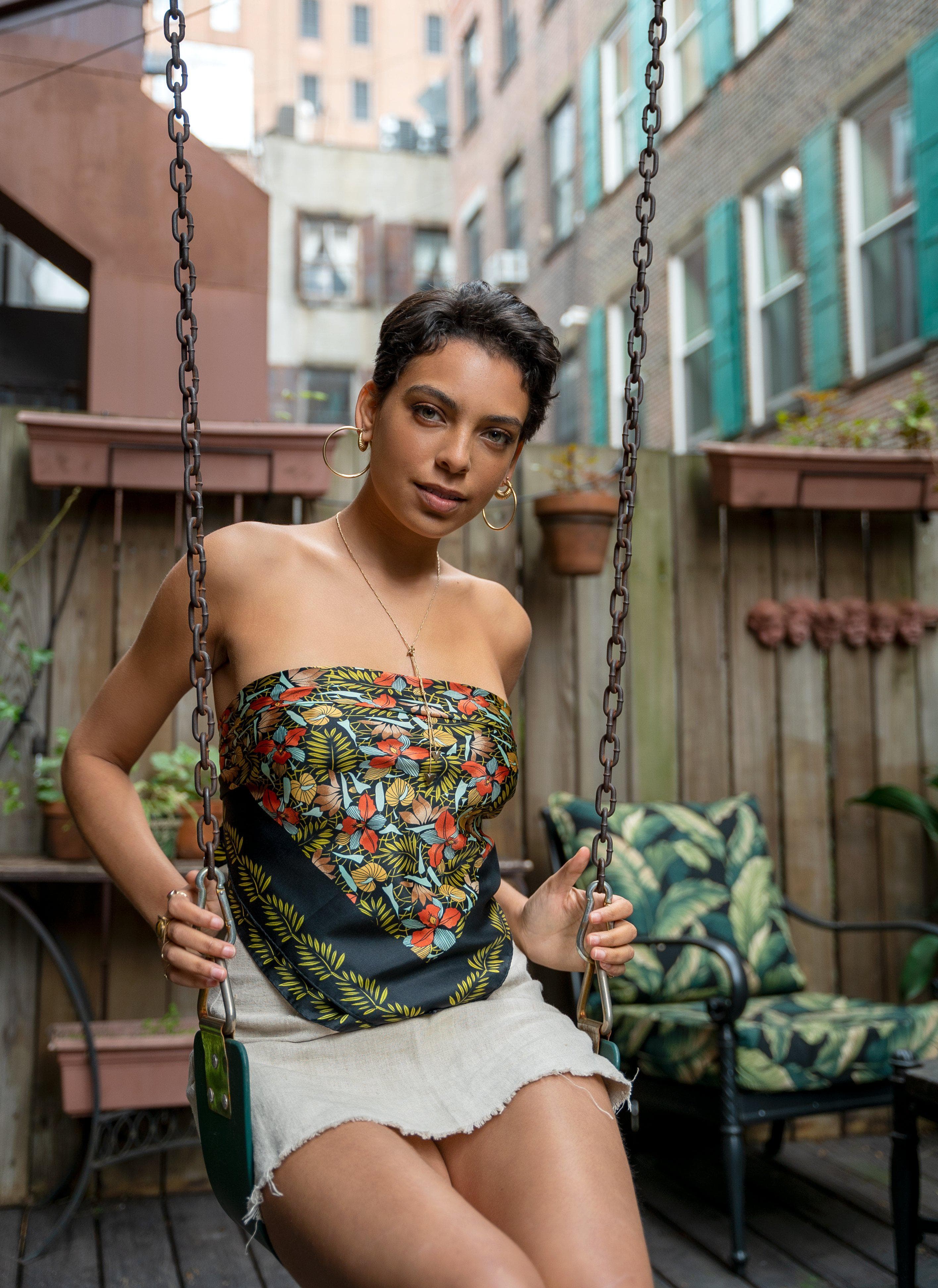 Girl of the Earth offers a slightly more upscale take on a lot of Gen Z trends—she takes the idea of a scarf top to new levels. That's because Sinclair simply designs according to silhouettes she finds intriguing, which is why you'll see an abundance of '60s-style miniskirts and '70's-inspired halter tops.