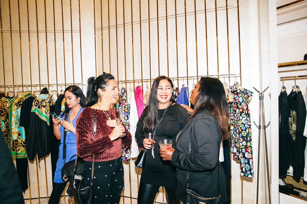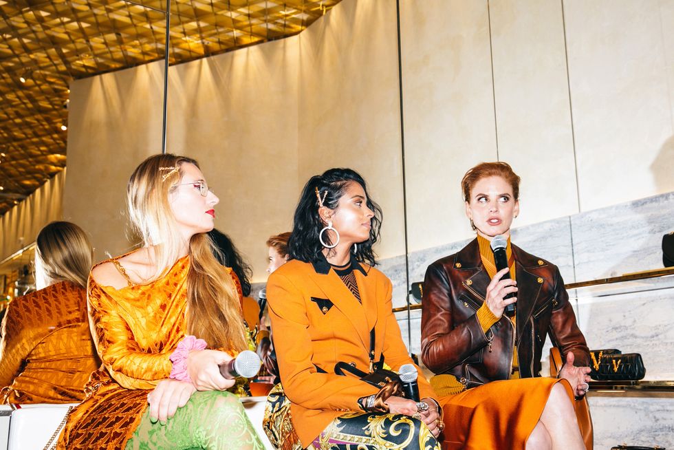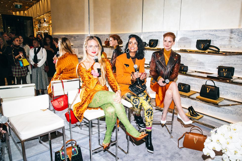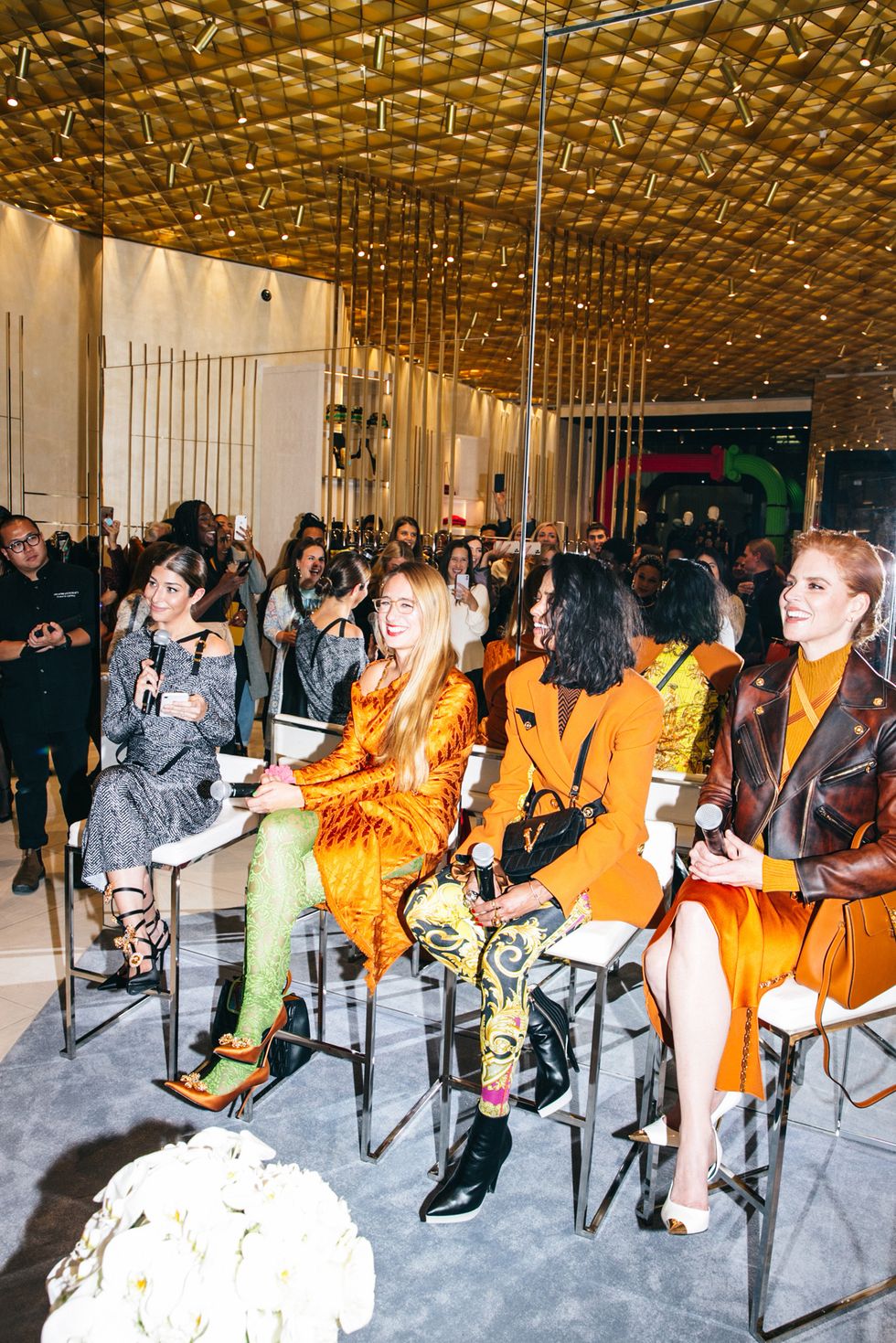 If there is anything that is going to entice the sartorial masses out after Toronto’s first snowstorm of the season, it’s to celebrate the kaleidoscopic (read: fancy) new Versace boutique in the swanky Yorkville neighborhood. We think it has something to do with all the Versace Virtus bags lying around and the stacked panel of women who embody its virtus (get it?), featuring Coveteur co-founder Stephanie Mark, photographer Maya Fuhr, creative Amy Shio, and actress Sarah Raffterty, who were all there to talk courage, strength, excellence, and, of course, fash-uns.