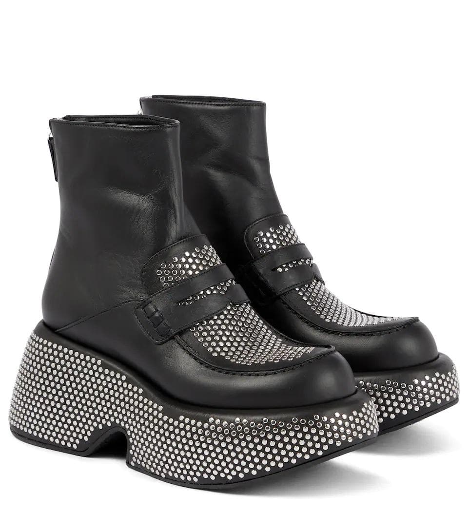 Embellished Leather Platform Boots