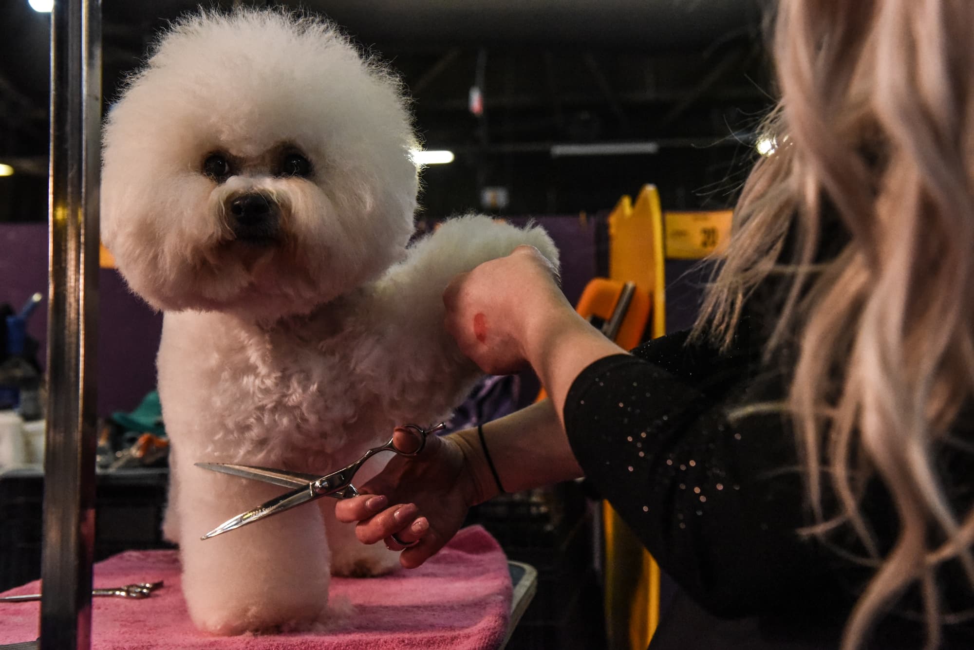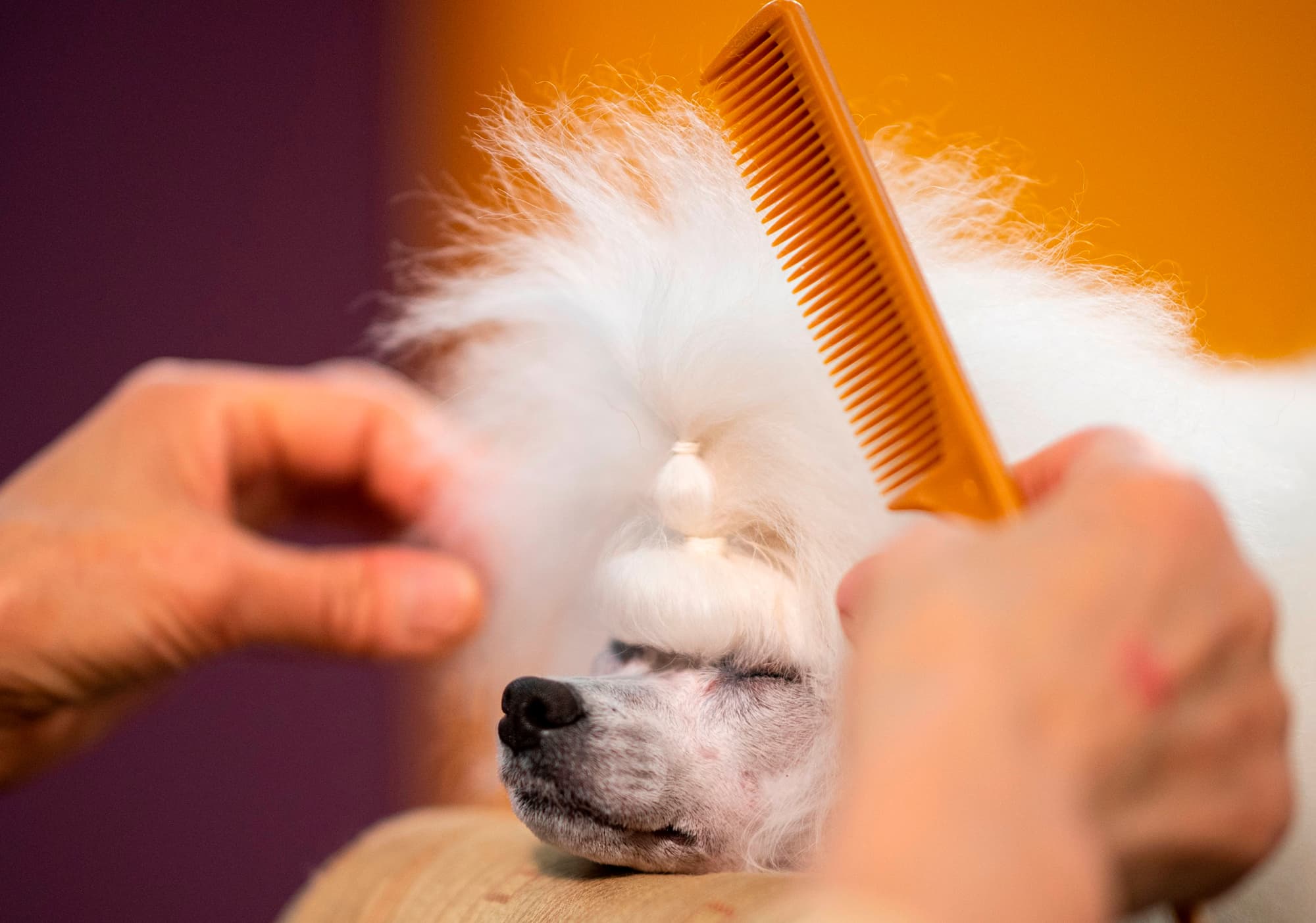 “With 205 breeds and varieties at our show, there are a lot of different grooming routines and rituals. And one thing to note is by the time the dogs get to Westminster, they’re the top of their game. So if you’re growing coat or you’re trying to create a harsher coat and have to strip it—all that work is done years, months in advance. Making sure your dog’s coat is at its prime when you get here is dedication. It’s using the right products; it’s grooming them properly every few days, if not daily; it’s also great nutrition. You have to have really high-quality food so the dog’s skin and hair is healthy.”