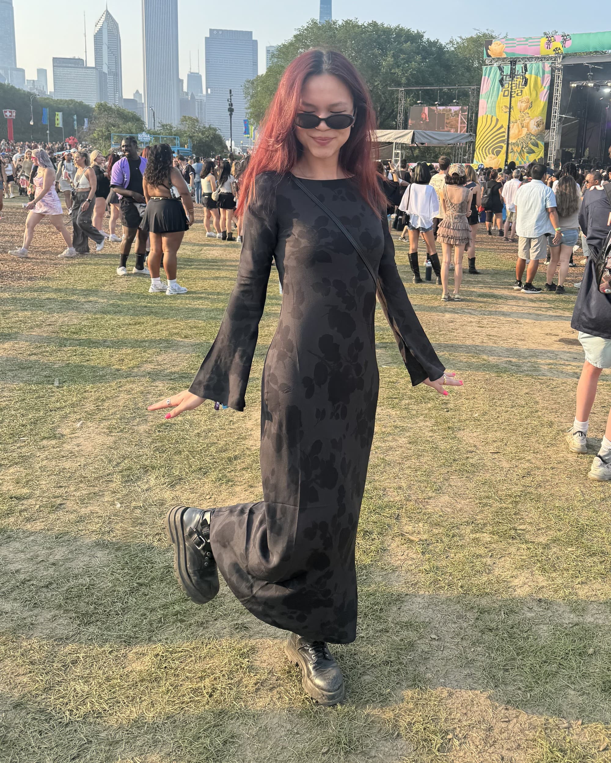 Overpacking. You never know which vibe, weather, or spontaneous afterparty will demand a full outfit change, so I try to cram everything (and I mean everything) into my bag. I always keep three non-negotiable essentials with me that keep the festival chaos at bay. The vibe I go for is “chic and prepared”—think Mary Poppins meets Lauren Santo Domingo.