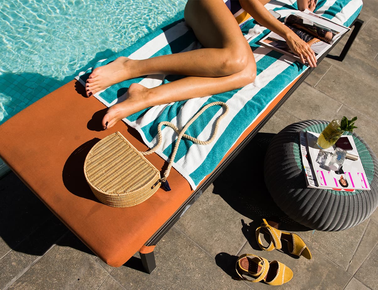 To be clear, poolside packing for Miami isn’t quite the same as just any destination—in most cases, it’s the main event. We love this sporty color-blocked Mei L’Ange bikini—the high-waisted bottoms keep you covered enough to hang out by the pool all day comfortably, while the printed halter-style top keeps you held in and offers support to busts of most sizes. As for the best pool in the city to flaunt it at? The EAST, Miami, a hotel in Brickell, which boasts a handful of pools to choose from.