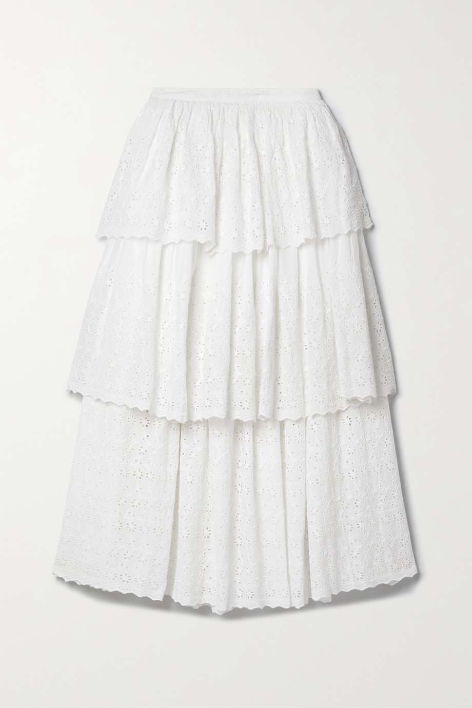 Kasiana Layered Tiered Broderie Anglaise Cotton Midi Skirt