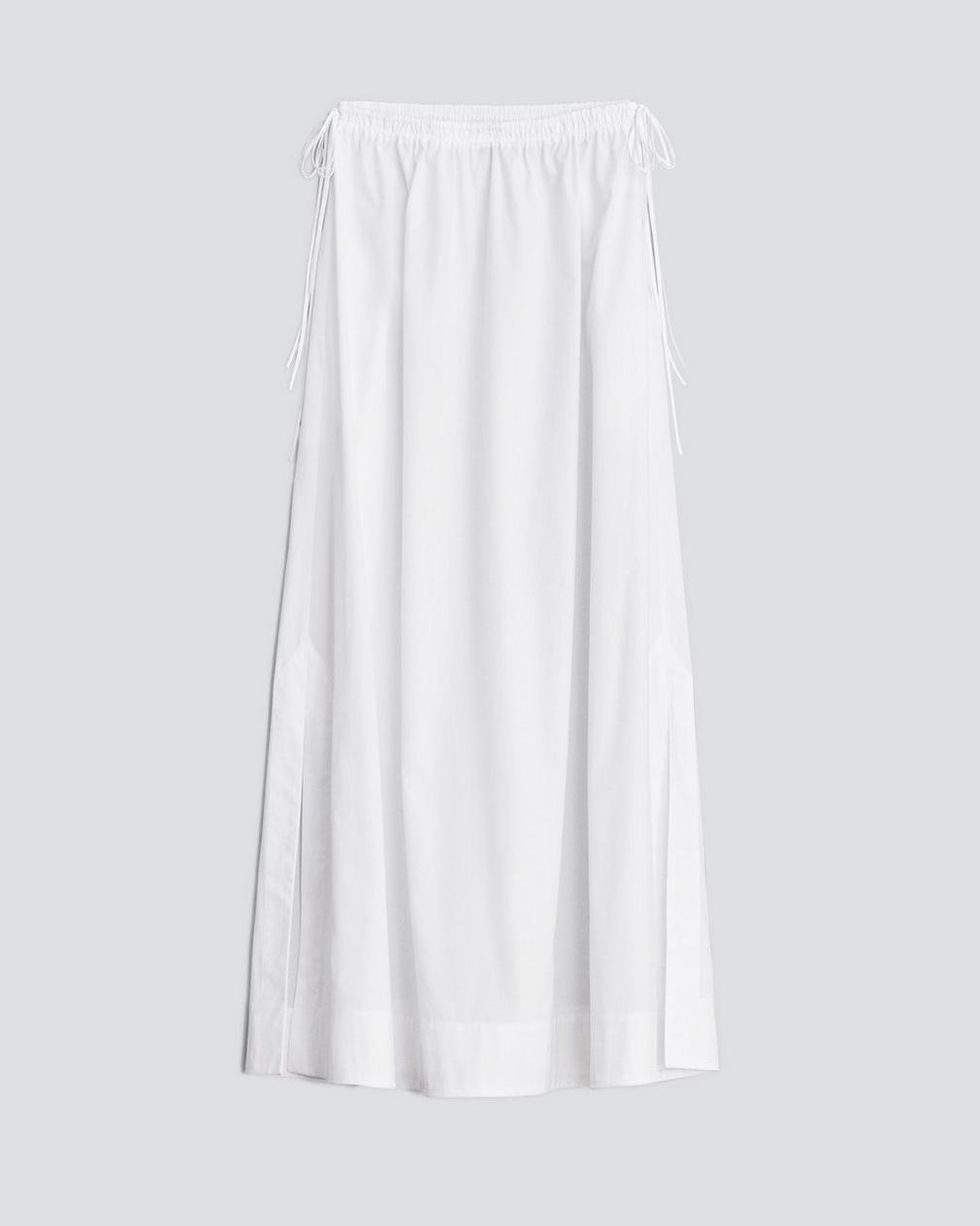 I’m partial to A-line cotton maxi skirts, but the options abound. Perhaps you prefer a tiered boho style or a sleek pencil variety. Maybe you’re interested in a drawstring linen skirt or a simple denim sheath. You can select anything from midi skirts to maxi skirts—as long as we cross the threshold of mid-thigh. If your interest is piqued, continue scrolling. We’ve rounded up our favorite white long skirts on the market.