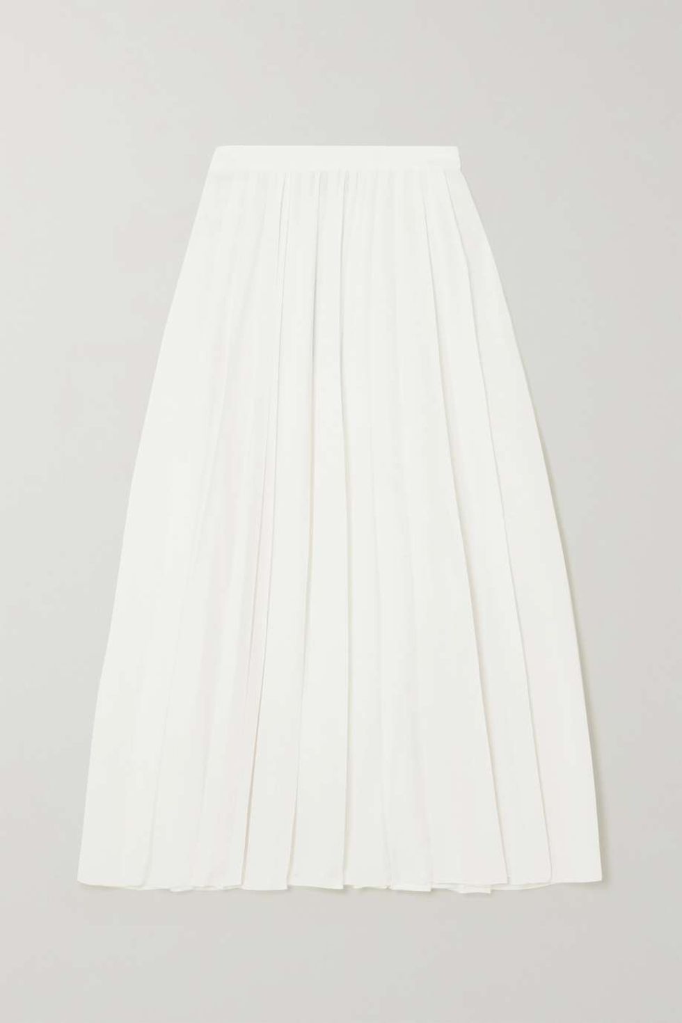 Another wardrobe workhorse: a pleated skirt. Select a stark white rendition for your fall ensembles.
