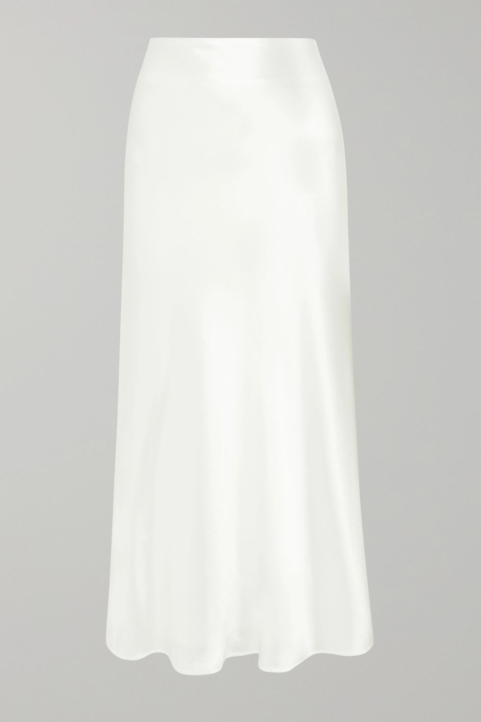 A silk satin white midi skirt is perfect for anything from formal evenings to corporate events. The simple addition of a blazer will take these summer staples to the workplace with no hassle.