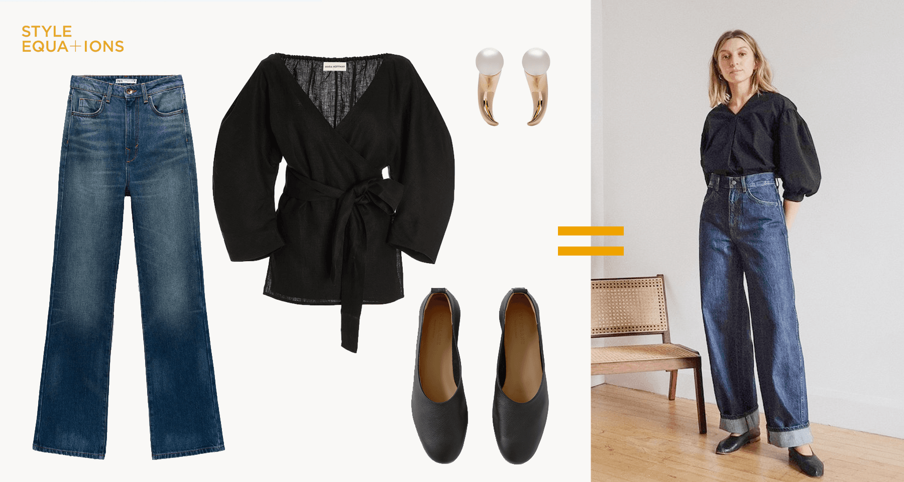 Right photo: Courtesy of Instagram/@brittanybathgateIn case you needed to polish things up a bit, a puff-sleeve blouse with an interesting silhouette is your best friend. Plus, we love the way she cuffs her oversize jeans to show off her ballet flats.
