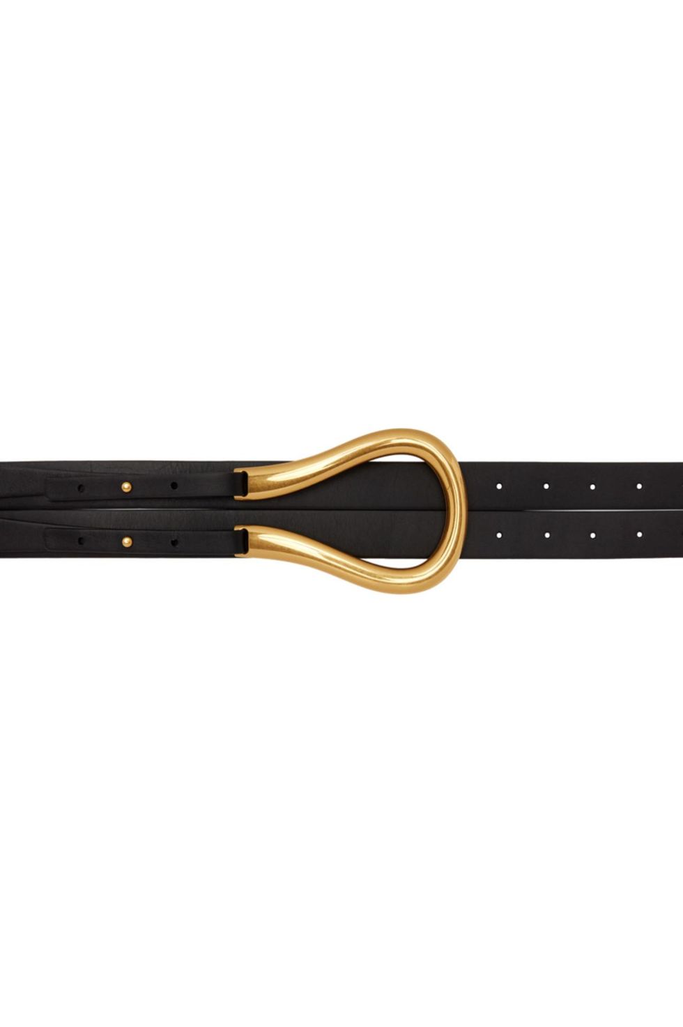 We love an ensemble that serves as a frame for statement accessories, particularly this architectural belt. A silk button-down and white boots are the perfect complementary options.