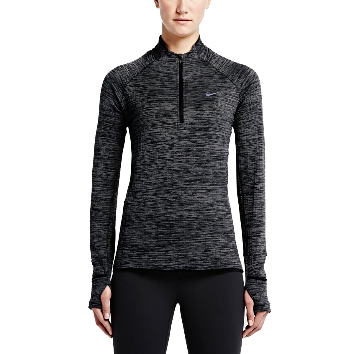 Layer Two is your thermal layer: a breathable-yet-cozy long-sleeved top that goes over your base, and ideally zips up to protect your neck. (The Nike Sphere Element is my go-to—it’s basically half running shirt, half light sweater. Plus, the sleeves flip into mittens!)