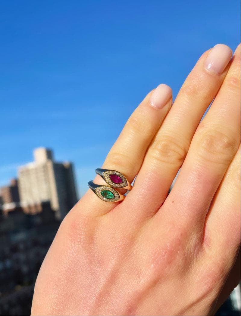 Rachie Shnay is a jewelry designer and Jewish activist based in NYC–and she’s another inspiring woman that I admire. She told me recently that when she was launching her designs, she was told to be cautious about the Mazel Collection as it might never sell. Today, the pieces in that collection are among her top sellers. I’m also eyeing this ruby and diamond clad symbol of protection that doubles as a pinky ring. Honestly, though, I love it all.