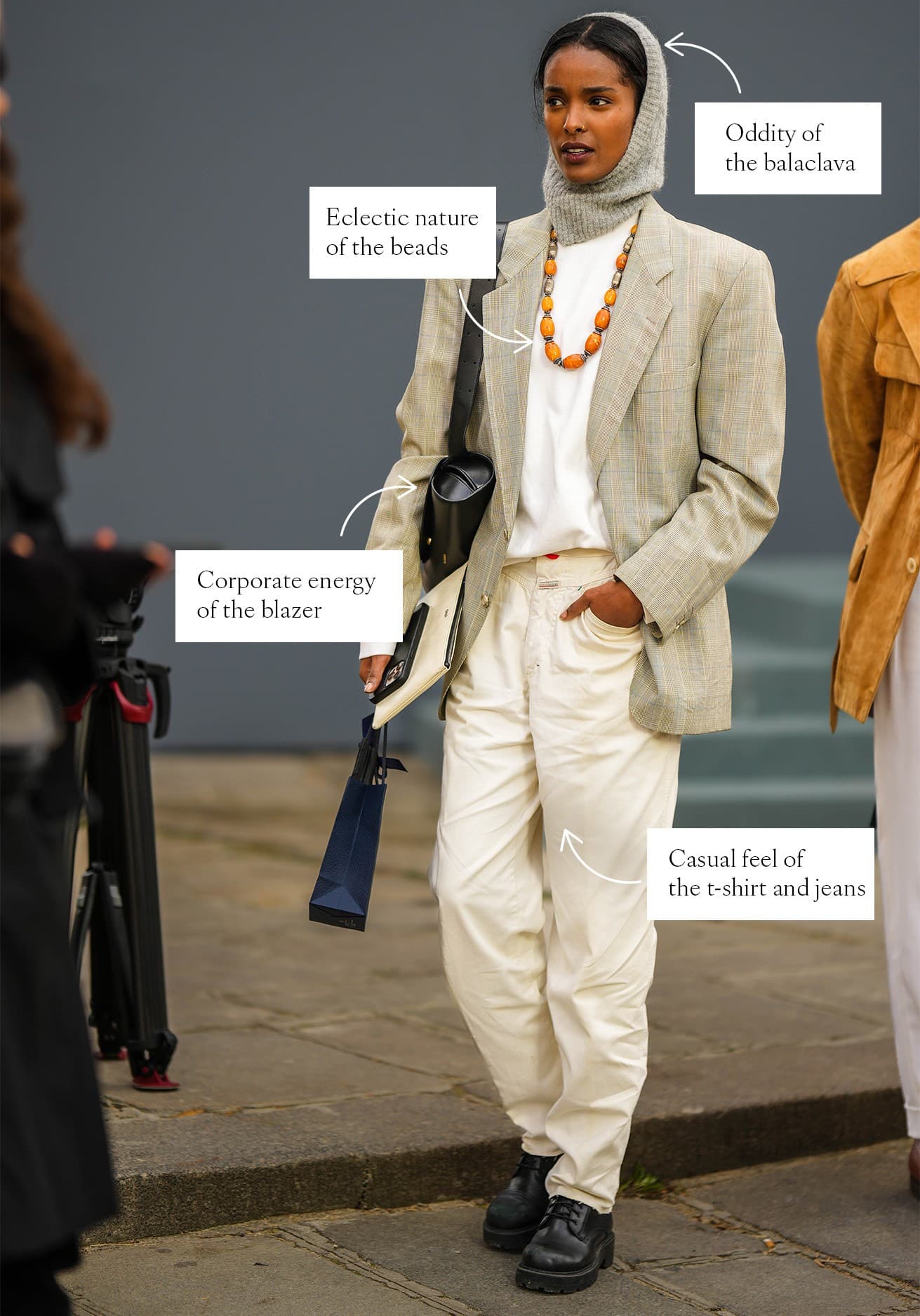 Photo: Getty ImagesWhen I get dressed, I begin with a single item. I’ll wear a tuxedo shirt for this exercise—light pink, consigned Stella McCartney, of course. My brain then sets off on a journey to offset that item. To counter the top, I’ll perhaps add a pair of wide-leg jeans that are objectively yet purposefully too big for me (I swear they look cool, Mom). To tie everything back in, I finish it off with a pair of grey mary janes, perfect in silhouette, weird in hue. Not only can you achieve this effect with differences in color or shape, but with styling, too. Leaving said shirt untucked or wearing it oversized clashes with its historical suiting connotation. Add a weird bag, a casual knit, or a statement earring—the pairings don’t even have to be so odd. Why do you think the combination of jeans, a T-shirt, and a blazer has become the de facto uniform for so many people?