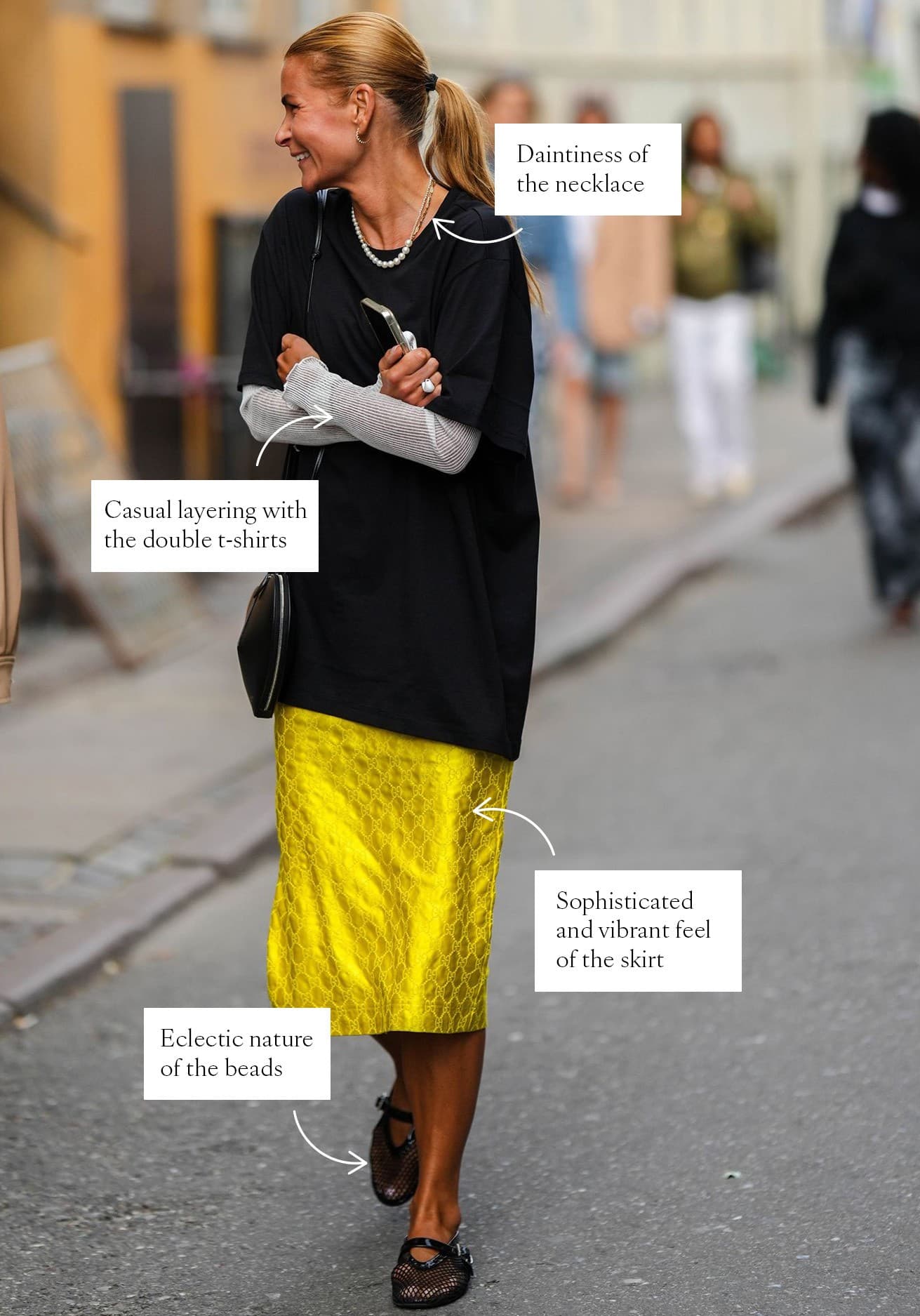 Our social editor walked into the office the other day, eyes alight. She was convinced she had found the second rendition of the Tik-Tok-famous “Wrong Shoe Theory.” Eureka! Bewitched by her own shaggy mullet, she postured, “It’s Wrong Hair Theory.” Sarah, the editor in question, favors patent leather ballet flats and a ladylike midi as much as the next Brooklynite, two items she is able to comfortably don because her Mick-Jagger-like haircut adds the perfect dollop of contrast. But I think that new take on the theory reduces her sense of style to an almost futile point; to do so would discount the other elements at play, whether that be a silver chain link necklace or a faded concert T-shirt that extends to mid-thigh (both of which are in heavy rotation). A lot of wrong comes together to make a right in this equation.