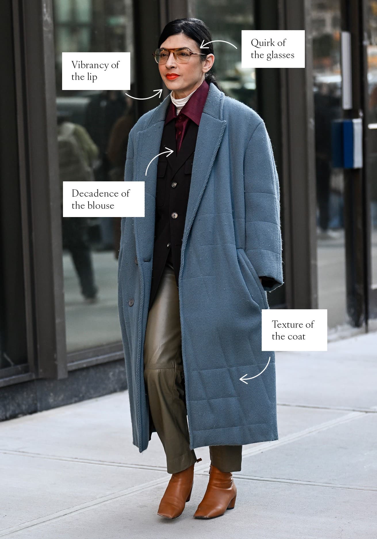 The aforementioned “Wrong Shoe Theory” came to life through the online presence of stylist Allison Bornstein, who garnered fame with her quotidian approach to the editorial world of styling clients for everyday life. The sartorial hypothesis swaps function for intention; it involves selecting a purposefully contrasting shoe to pair with the rest of your ensemble. For example, Bornstein would suggest marrying a sneaker (the catalyst for this movement) with tailored separates or a nightgown-like dress, i.e., choosing the “wrong shoe.” She’s correct, but I think you could apply this same sentiment to anything you put on.