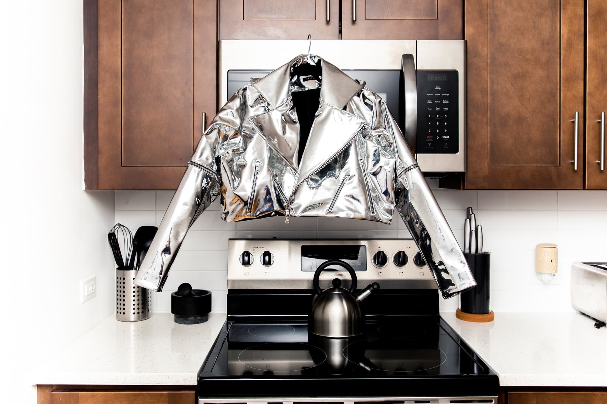 “I had leftover vinyls from a jacket, [but] I didn’t have the right tools for my machine, and I literally forced the vinyl through the machine. I threw [the sample] inside my closet, and it sat there for...six months?”