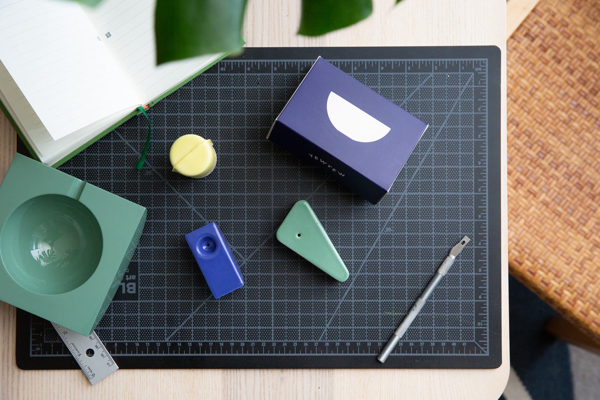 “I have no background in product design, but I started sketching ideas and researching competitors online. The half-circle shape actually came from wooden toy blocks I got for my nephew. A Pinterest-slash-Tumblr k-hole led me to a triangular stone sculpture that I kept coming back to. With those two designs, I figured I had enough to test the market. Then I Googled the shit out of ceramic factories in the USA and found a really great one in Portland, Oregon. I sent them the samples and ended up launching Yew Yew a few months later.”