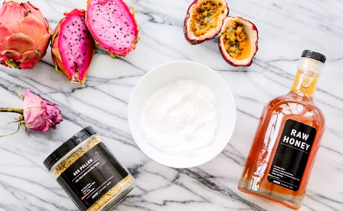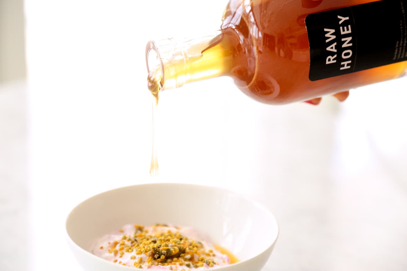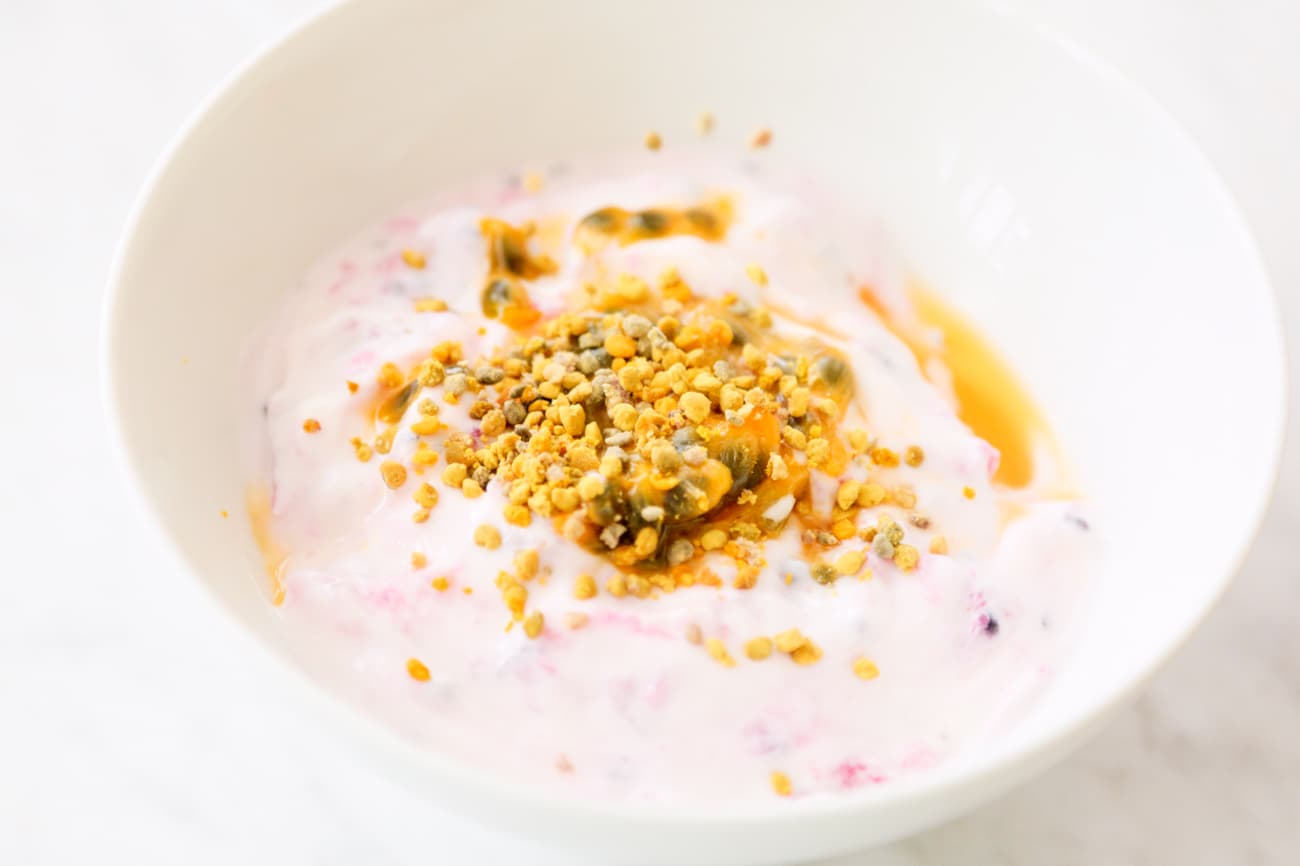 three >> Top yogurt with passion fruit, bee pollen, and honey