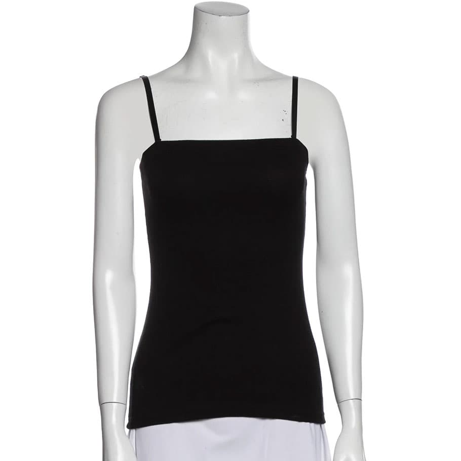 The clean lines and sharp, square neckline on this black tank blur the lines of formality—you can dress it up or down so easily. Wear it out at night with a pair of denim cutoffs in the summer or with a blazer to the office.