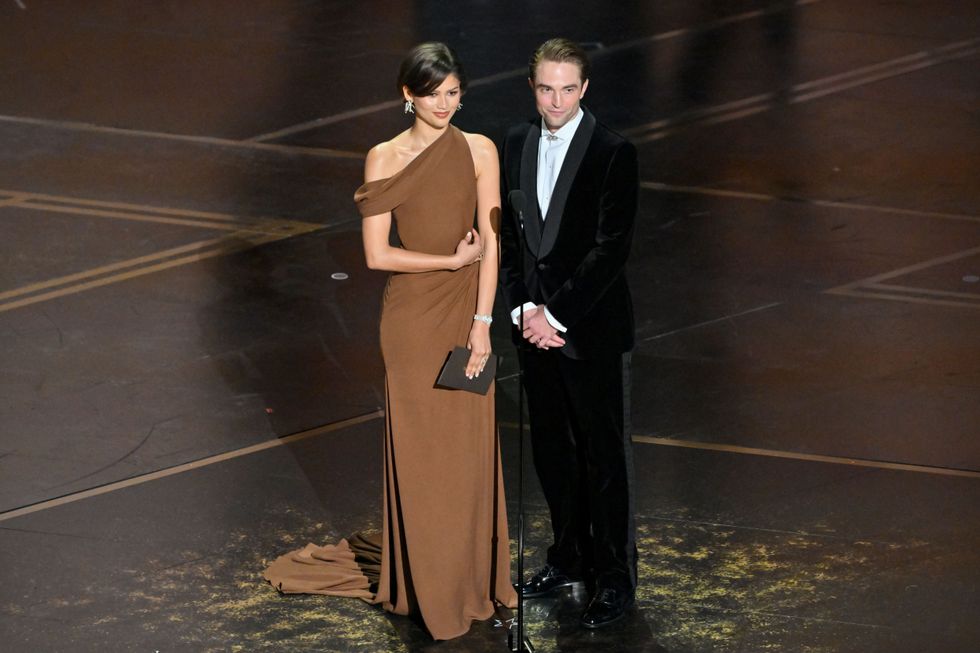 The press tour looks arguably began when she emerged on the 2026 Oscars stage with The Drama co-star Robert Pattinson in a custom chocolate brown Louis Vuitton gown with a draped, off the shoulder neckline.